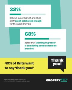 Of all the top festive hero roles, 56 per cent come into most contact with supermarket staff. And when it comes to opinions on the sector, 68 per cent agreed that working in grocery is something people should be proud of.